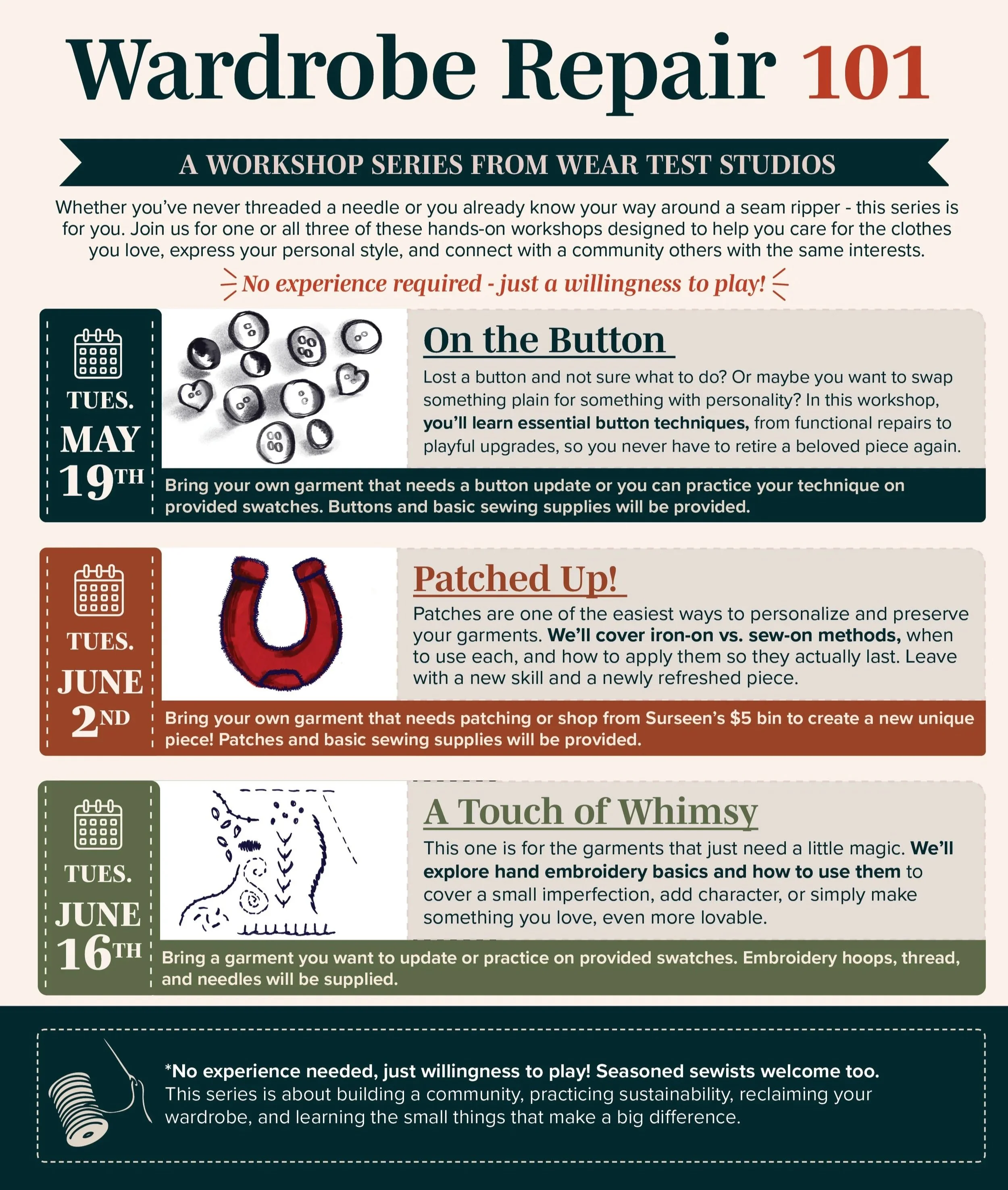 If you’re interested in all three workshops, you can reserve your spot at a discounted rate! Get access to On the Button (5/19), Patched Up! (6/2), and A Touch of Whimsy (6/16).
